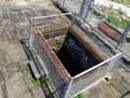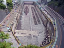 1901 年から1905 年にかけて三菱合資会社時代に築渠した大型船舶修理用乾船渠(ドライドック)。背後の崖を切り崩し、前面の海を埋立て拡大した。開渠時に設置された英国シーメンス社製の電動機で駆動される排 水ポンプは100 年後の今も稼働し、ドライドックの機能を維持している。船渠は拡張を行っているものの、三菱合資会社の当時の姿をとどめる貴重な資産である。 |