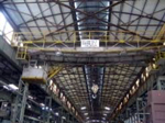 三菱合資会社の時代に、造船所の工場設備電化に伴いわが国に初めて建設された電動クレーン。英国アップルビー社製造。 大型舶用装備品の吊り上げ荷重に耐え、電動モーターで駆動される当時最新のクレーンで、1909 年に造船所の機械工場付近の飽の浦岸壁に、タービンやボイラなど大型機械の船舶への搭載と陸揚げのため建設した。現在は機械工場で製造した蒸気タービンや大型舶用プロペラの船積み用に 使用している。 |