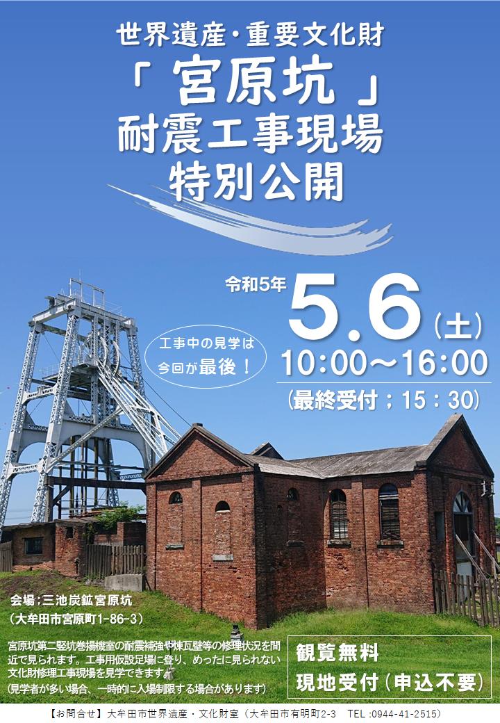 5月6日(土)世界遺産「宮原坑」耐震工事現場の見学会を開催します!