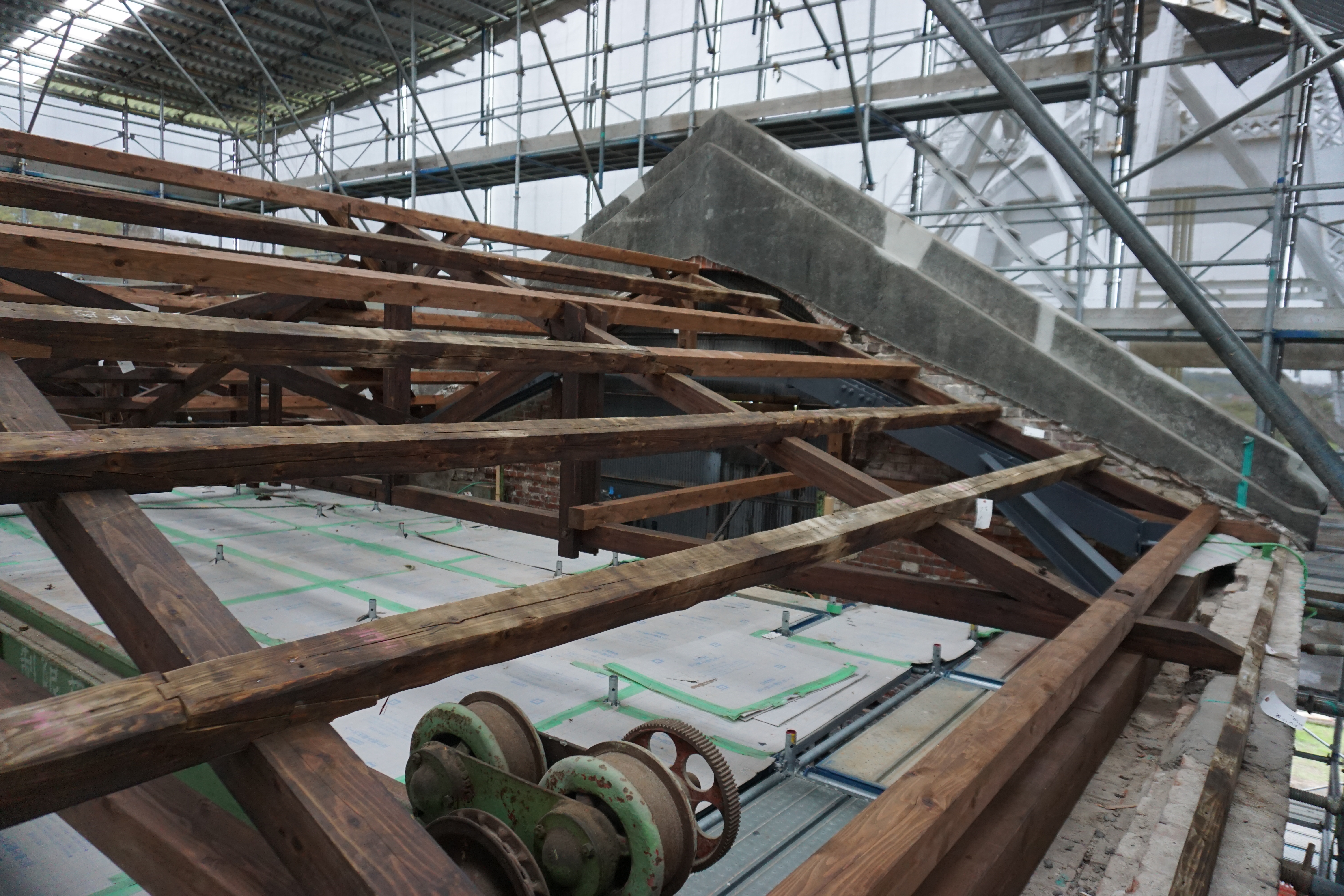 修理後の小屋組(屋根材)の様子