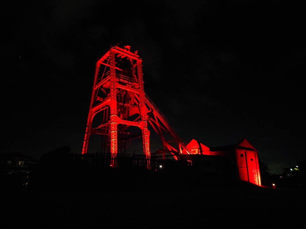 昨年に続き、日本赤十字社福岡県支部からの依頼を受け、「宮原坑」のライトアップを実施します。昨年のライトアップの様子