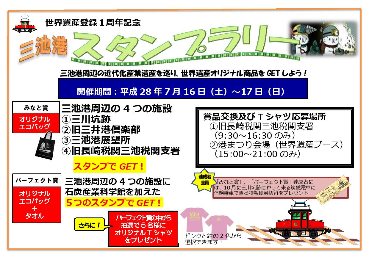 明治日本の産業革命遺産の世界文化遺産登録1周年を記念して、港まつりが開催される7月16日と17日に、三池港周辺でスタンプラリーを実施します。