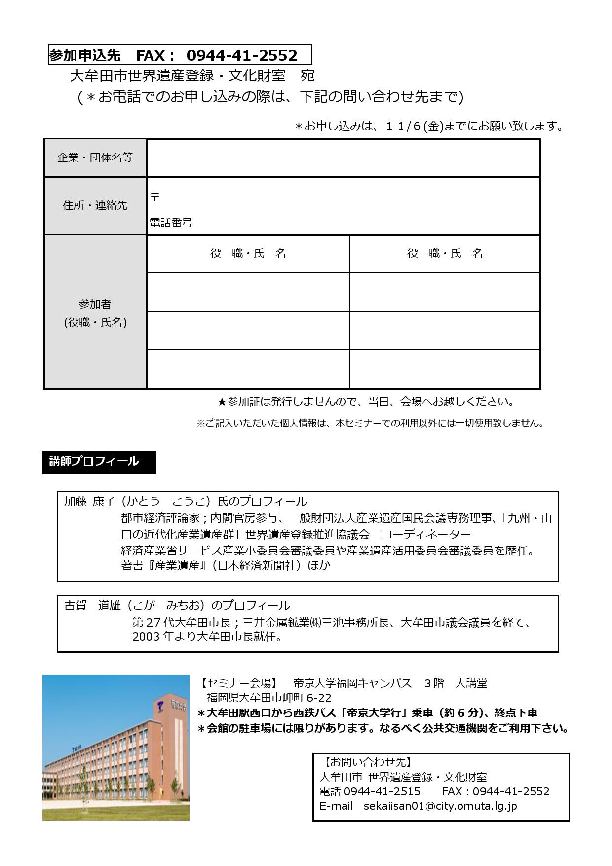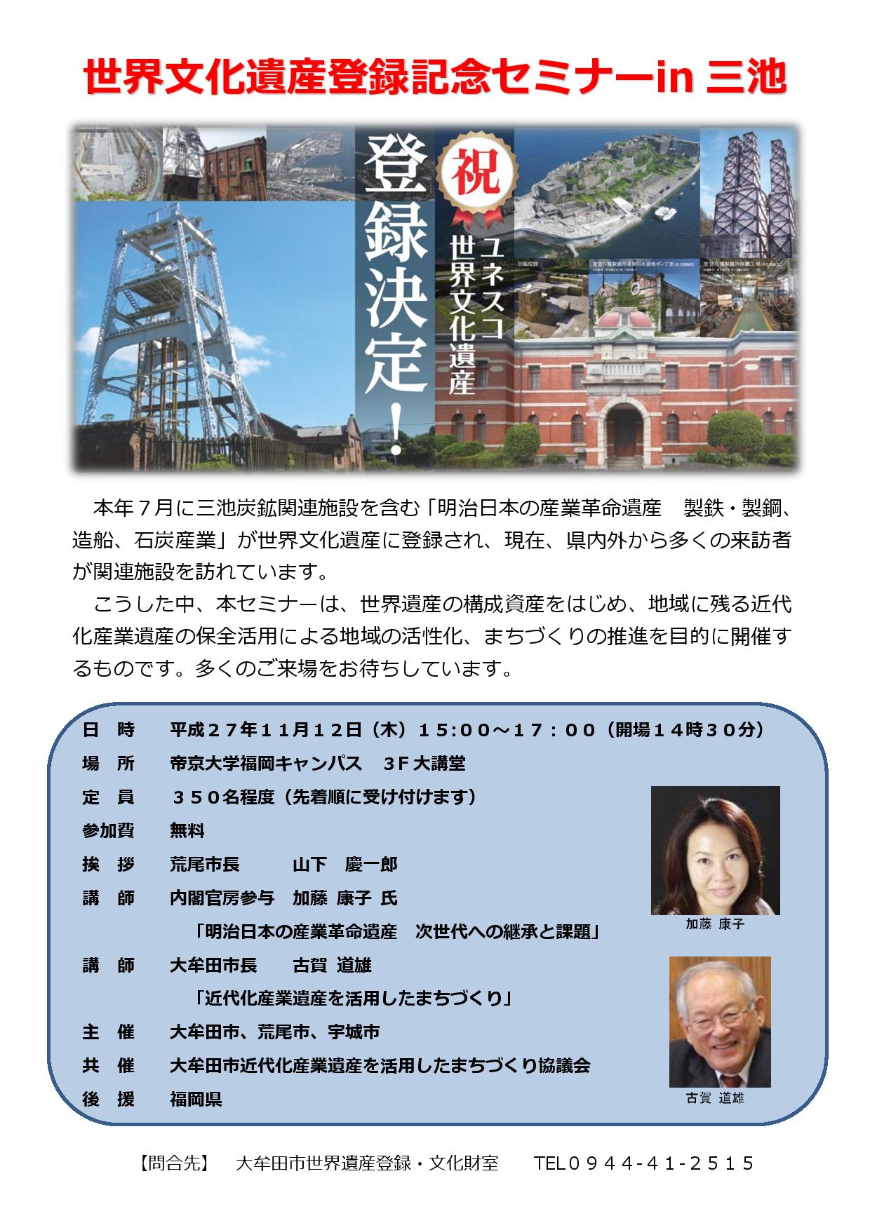 「世界遺産登録記念セミナーin三池」を開催する運びといたしました。