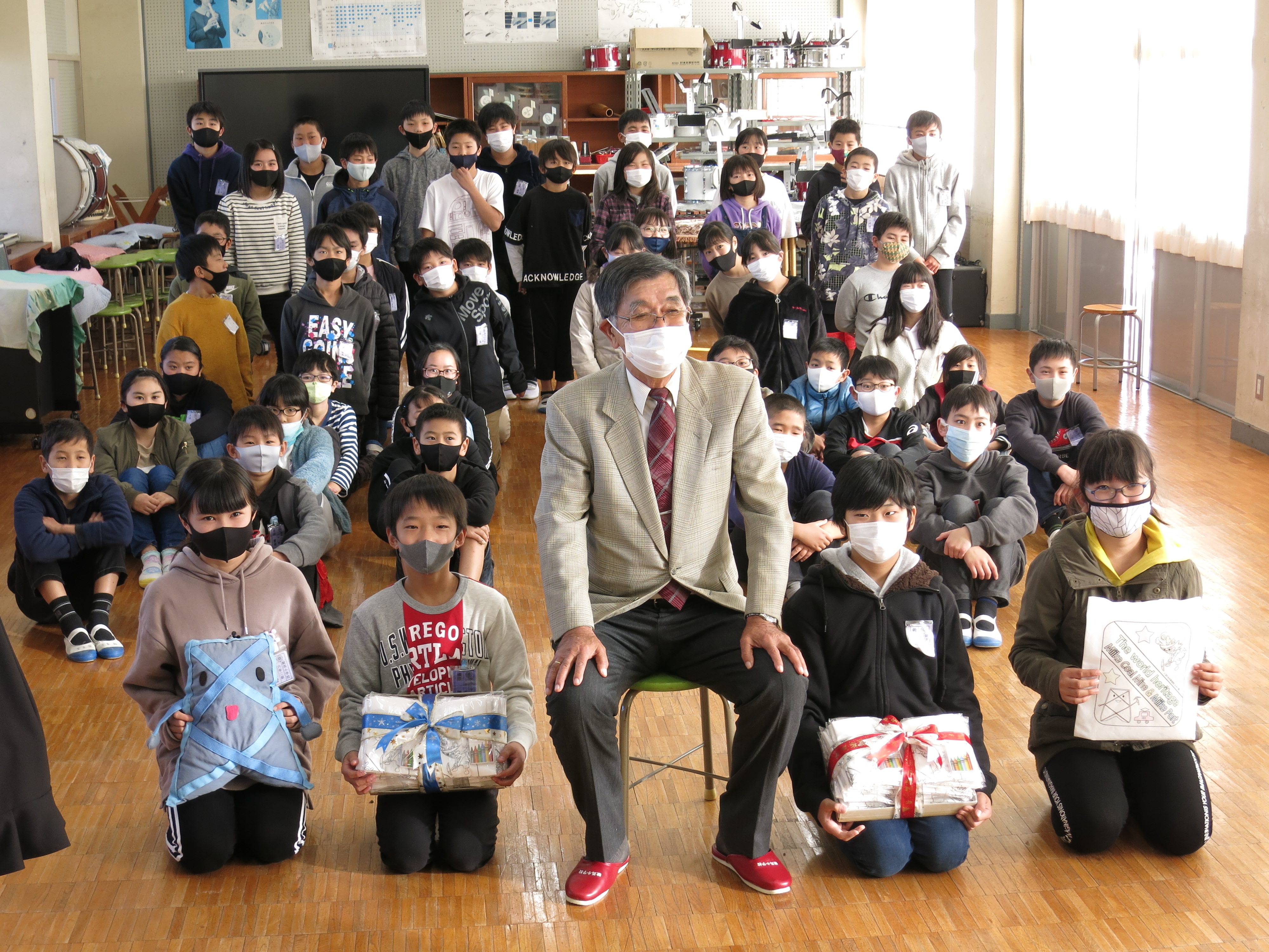 駛馬小6年生へ世界遺産グッズをプレゼント